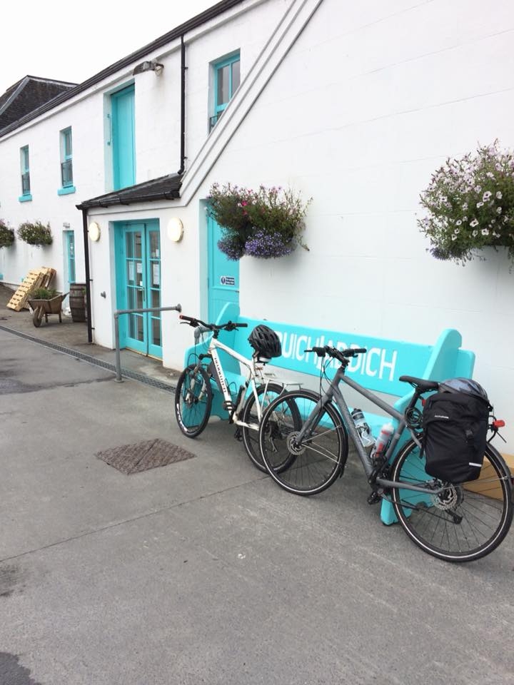 After another couple of pints we managed to 1.4 miles (mostly flat) to our first distillery. Very nice. Leaving here my derailleur thing snapped, so no more cycling for me today. |