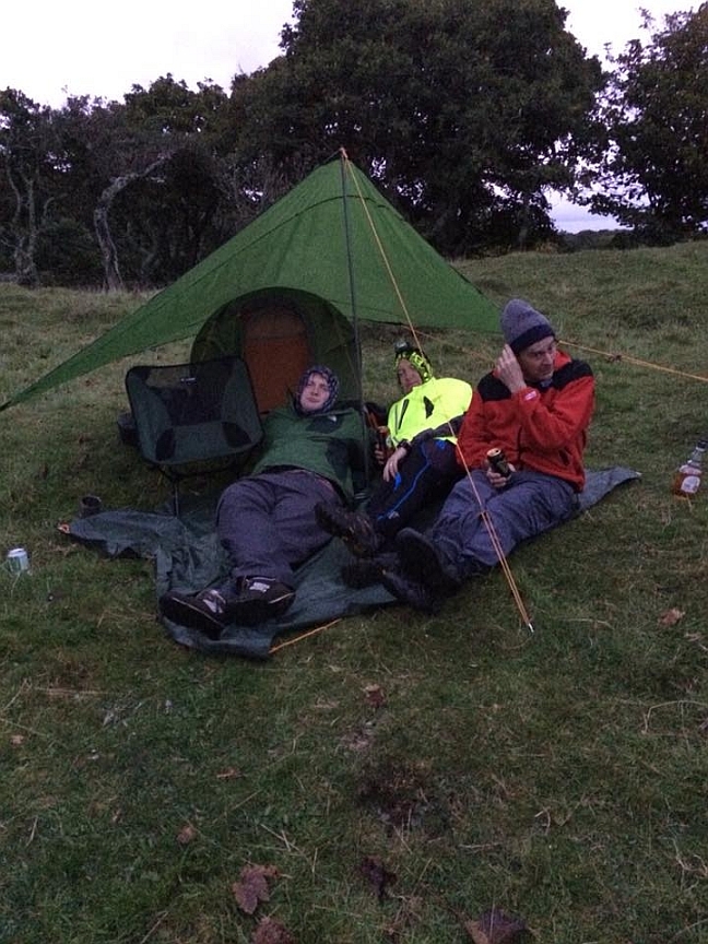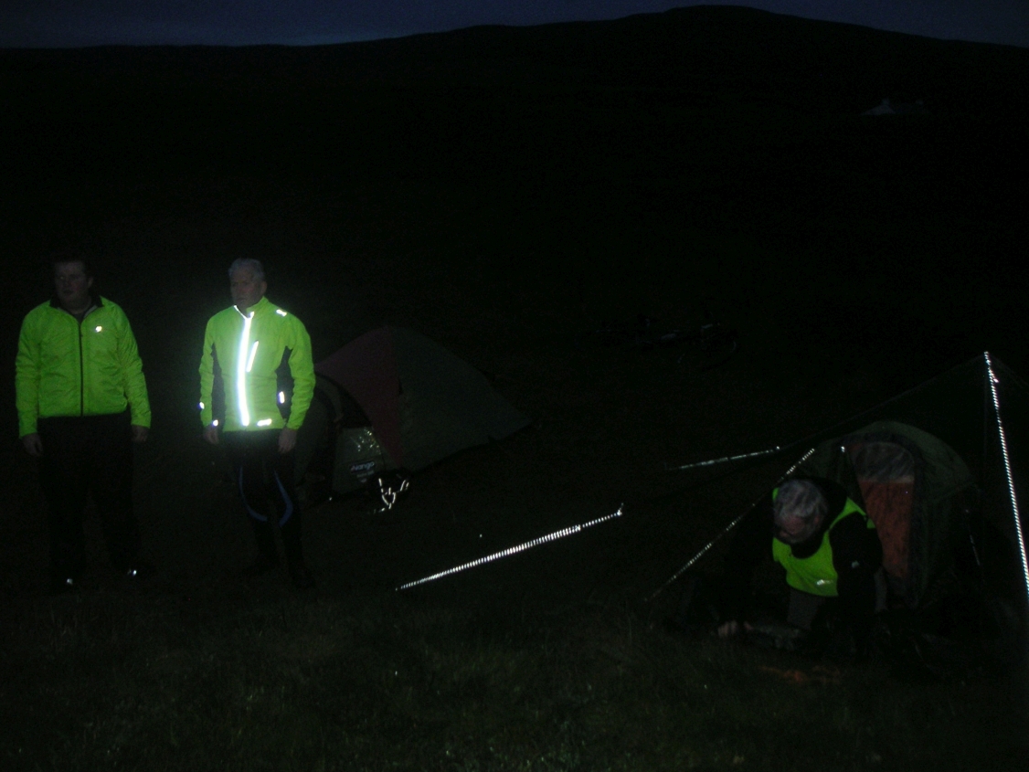 ![]() So tents up, we had only covered 9.5 miles so time to hit the road. Forgot to put on my yellow top again. |