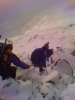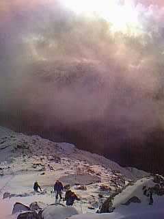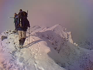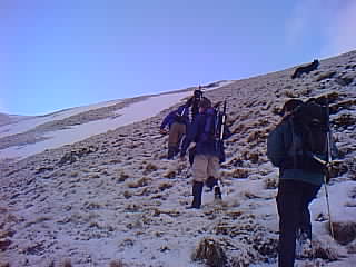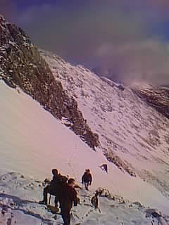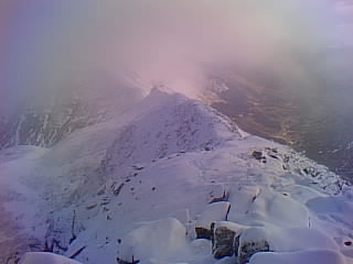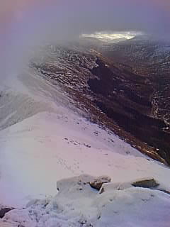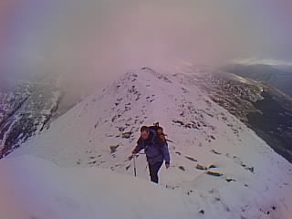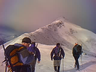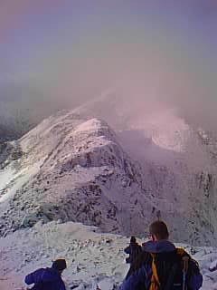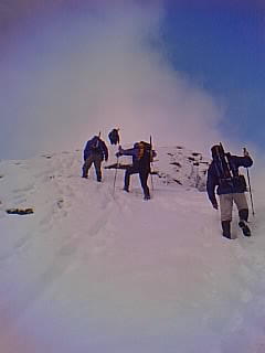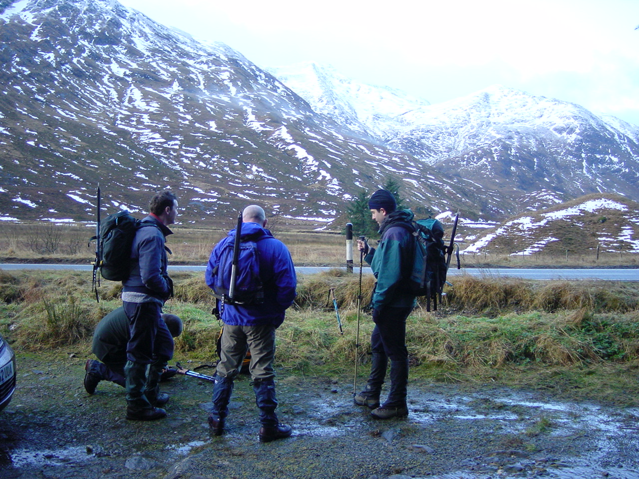 So after the usual lengthy preparation, (several bottles of whisky between 5, in very few hours) we decided to make our move on the Five Sisters on the Sunday, leaving plenty of time for further drinking on the Saturday. Some ski-ing and snowboarding did take place, and we did actually have another couple of shandies to get us into the hillwalking mood. Sunday dawned at some ungodly hour, and we were off.