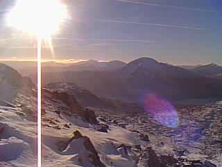 Change of perspective - Gleouriach (on the right) seen from the Glen Sheil Ridge, earlier in the year. |