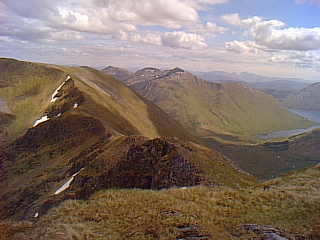 Loch Quioch on the left, the Glen Shiel Ridge on the right, and Gleouraich away over there. Long walk behind us |