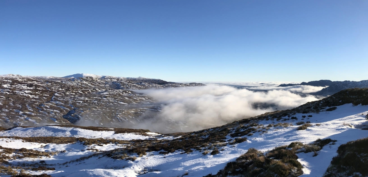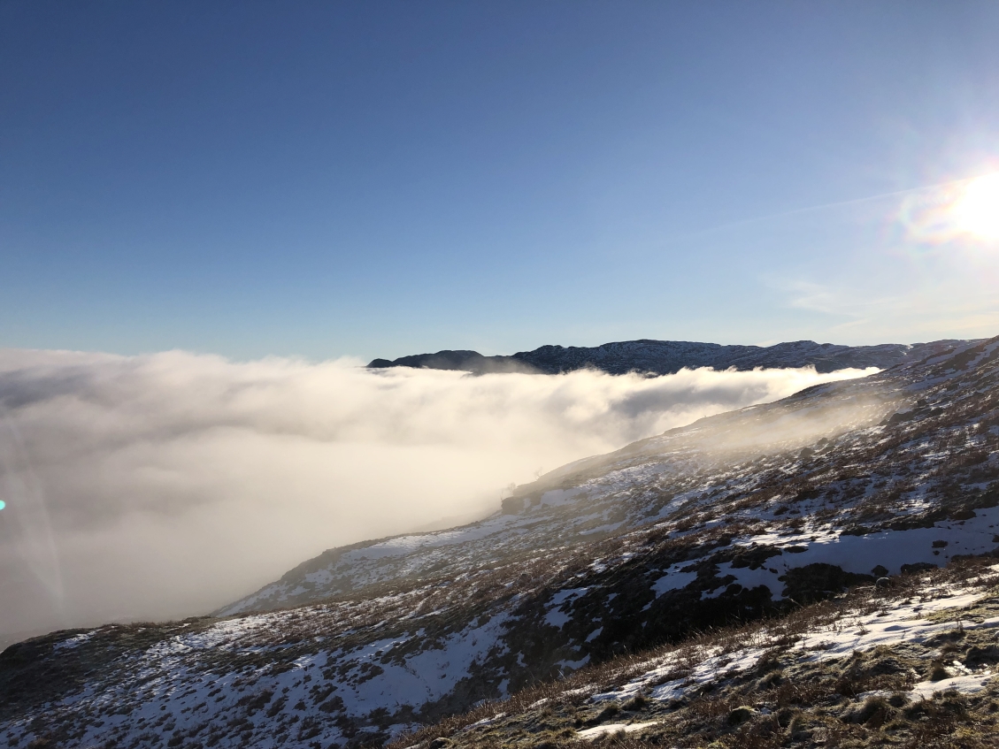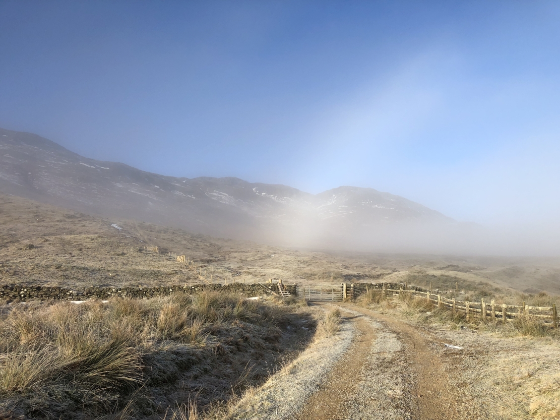 ![]() First sight of the hill, and cloud beginning to burn off. |