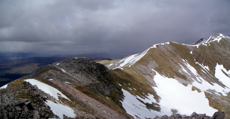 Closer view of the ridge between Stob Coire an Laoigh and then the second hill Stob Choire Claurigh |