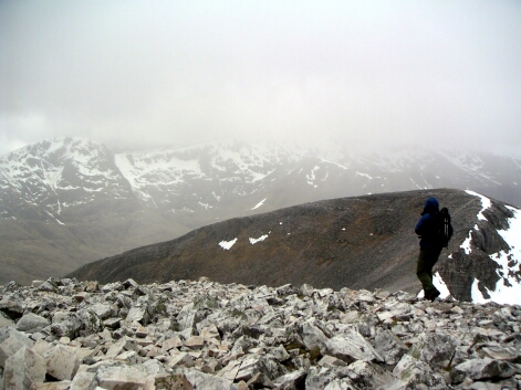 Finally, the top of Stob Coire an Laoigh, and a bit of mist as you'd expect |