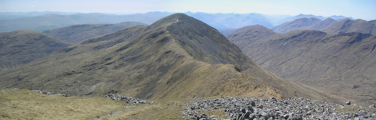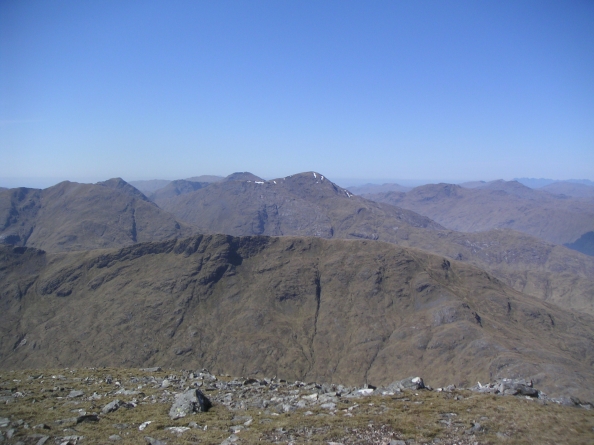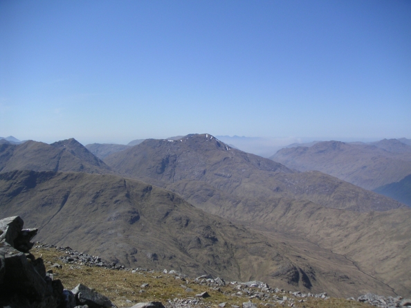 A better view of Sgurr Thuilm from the summit, with the cloud beginning to roll up the glens |