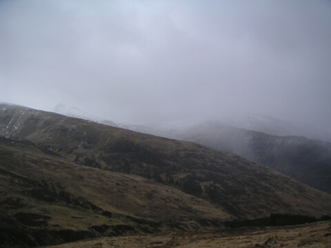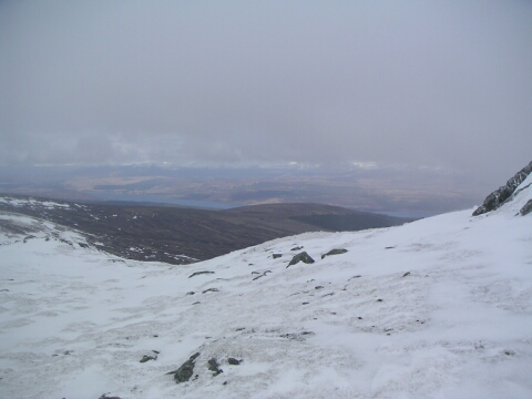 At last a view of something (Loch Rannoch, and whatever is up there). |