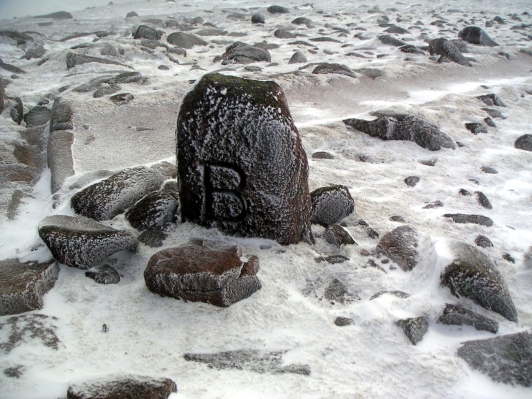 A somewhat pointless stone next to the summit. B for boundary allegedly. |