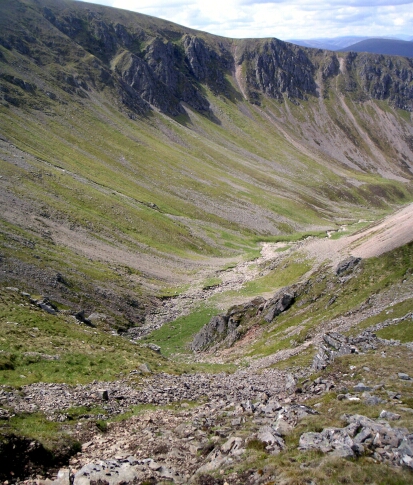 The Corrie opened out towards the top. Fionhar Choire on the left. |
