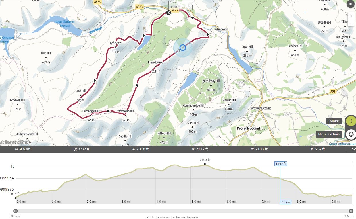 Gaining some hight on the way up Ben Shee. Looking north up Glen Eagles. |