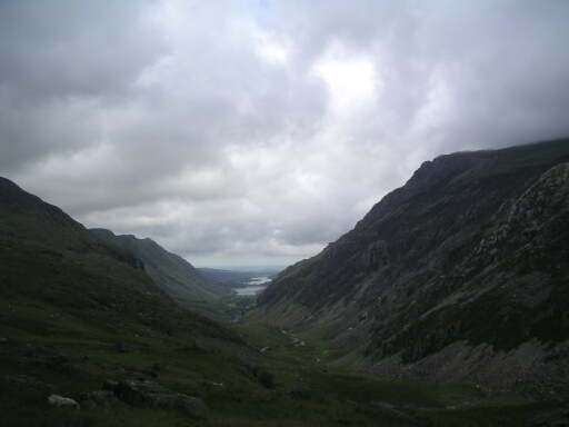 Looking down Llanberis pass towards Nant Peris and Llanberis itself |