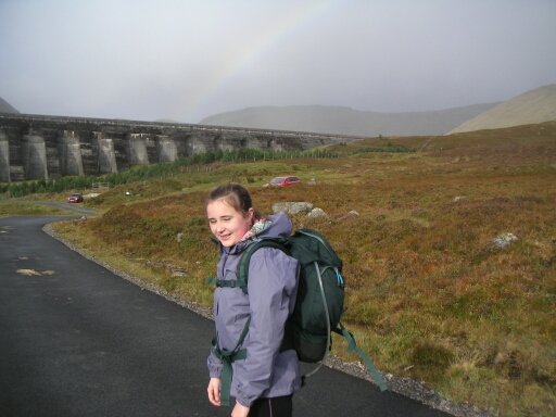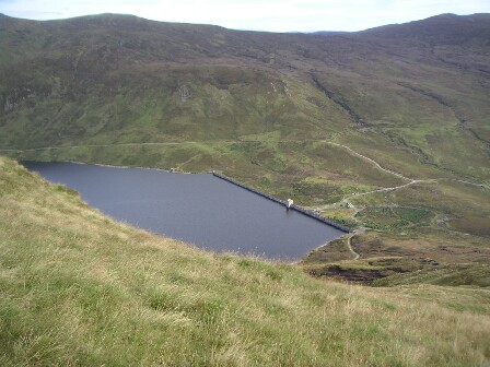 The dam at Loch an Daimh, and Creag an Fheadain. |