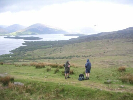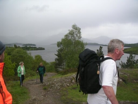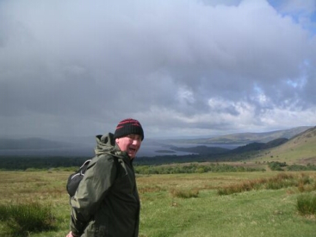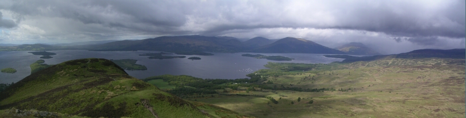 Another Loch Lomond view, from the top of Conic Hill itself. Now we can see the rain and hail that is coming our way. |