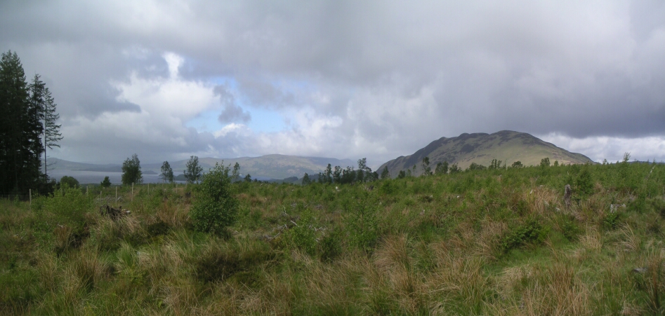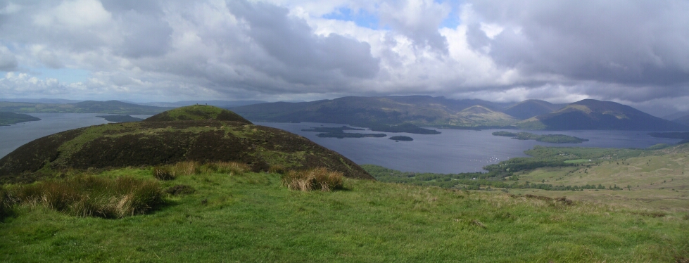 Where we have come from round on the left, to Loch Lomond and the shoulder of Conic Hill |