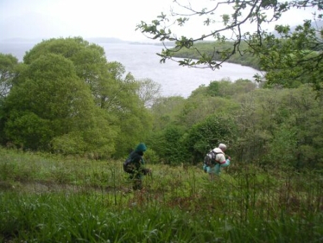 Loch Lomond to the left, Conic Hill to the right. A hill at last. We climb to 1000 feet, or 1175 if you go to the top. |