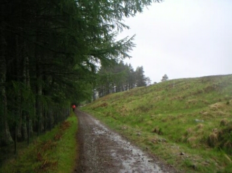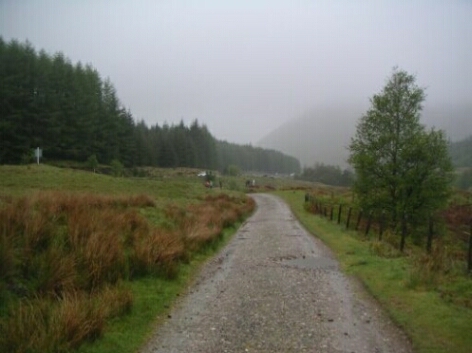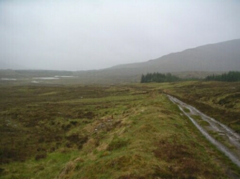The great outdoors. Looking back down the track from the cairn at the 61 miles point. Another mile to the pub. |