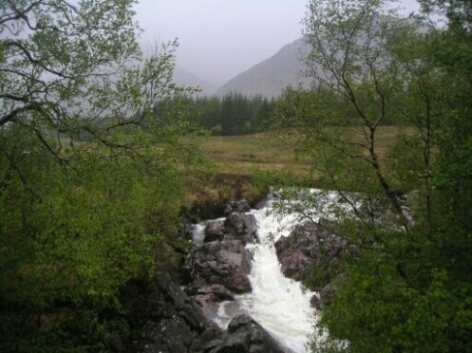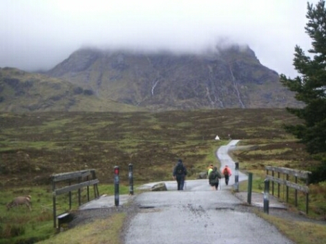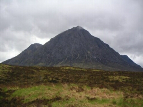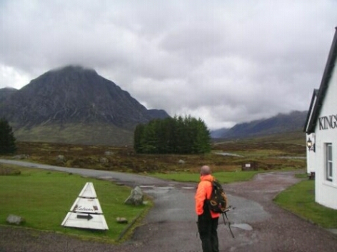 And after a refreshment the weather didn't seem as bad. First view of Buachaille Etive Mor and Glen Coe |