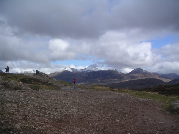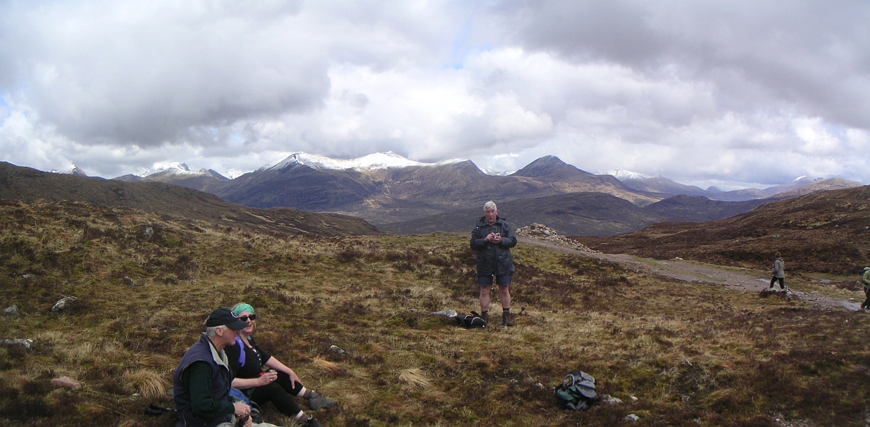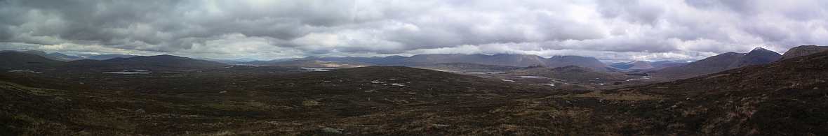 ![]() A wider vista, with Rannoch Moor before us, and the same hills as above on the right |