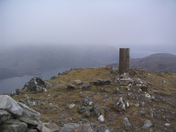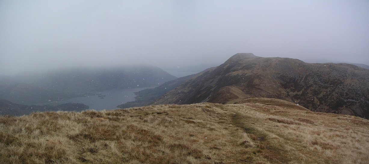![]() and the top of Mam na Gualainn, which I also did. Note the snow falling. | ![]() Looking back to Beinn na Callich | |