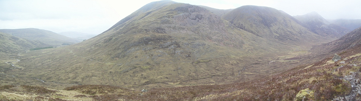 ![]() The standard route, with Buachaille Etive Mor on the left. This hill appears in a few more pics! |